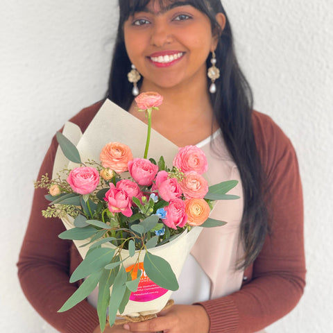 Your bouquet may vary slightly from the picture, but rest assured, our talented florists will create a stunning arrangement tailored to the season. We may use alternative blooms of equal or greater value, ensuring your bouquet is always spectacular. Get ready for a delightful surprise that'll bring smiles and joy!