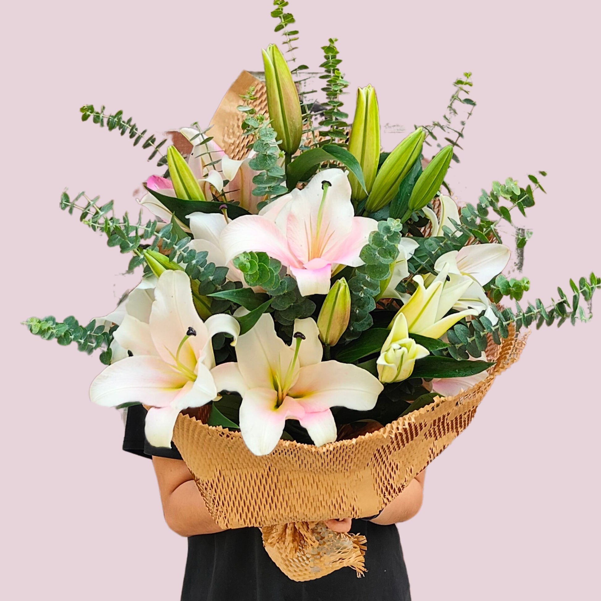 Our Fav Collection features a classic mix of Baby's Breath & Eucalyptus, a favorite for any occasion. Wrapped in eco-friendly honeycomb paper, these bouquets are beautiful and kind to the planet.