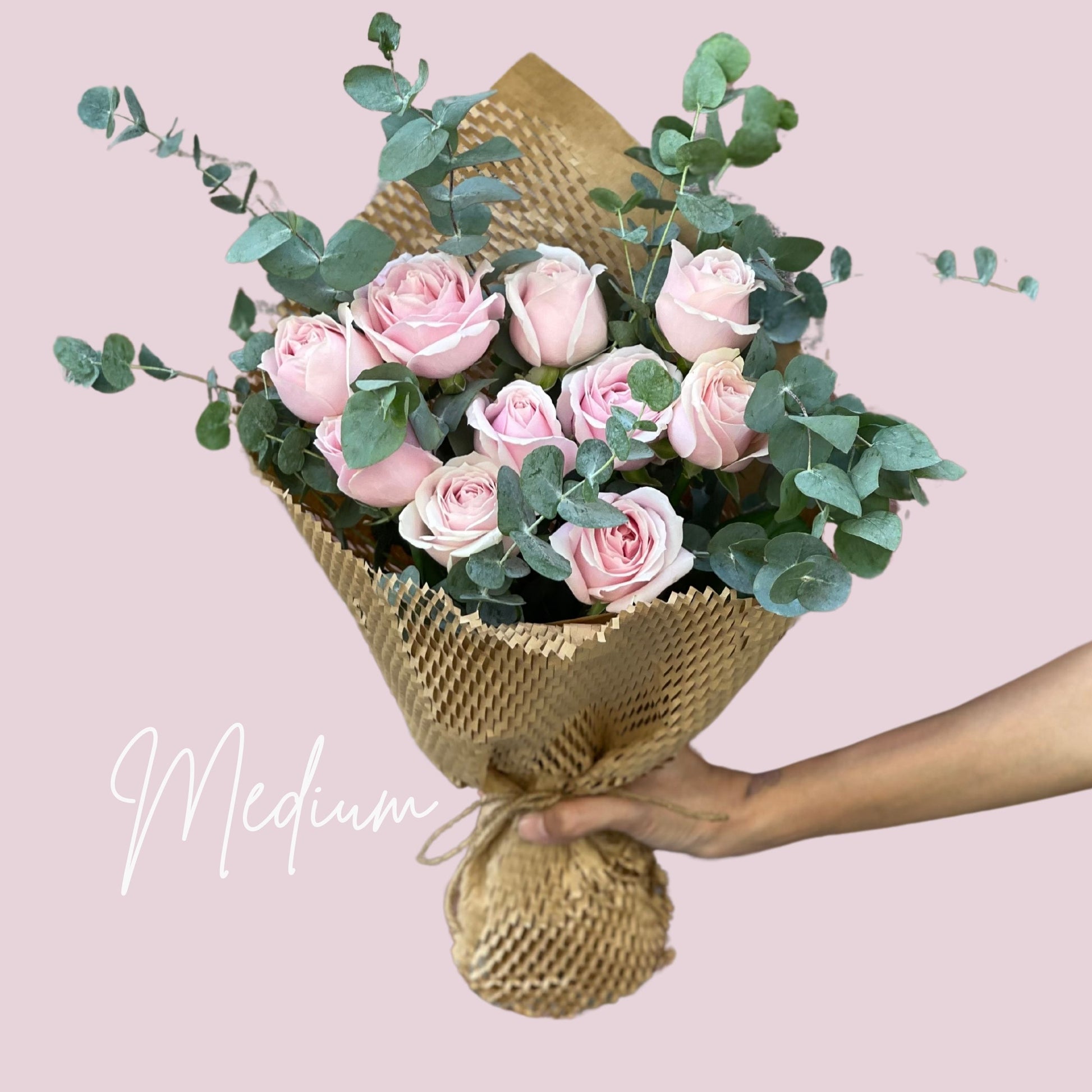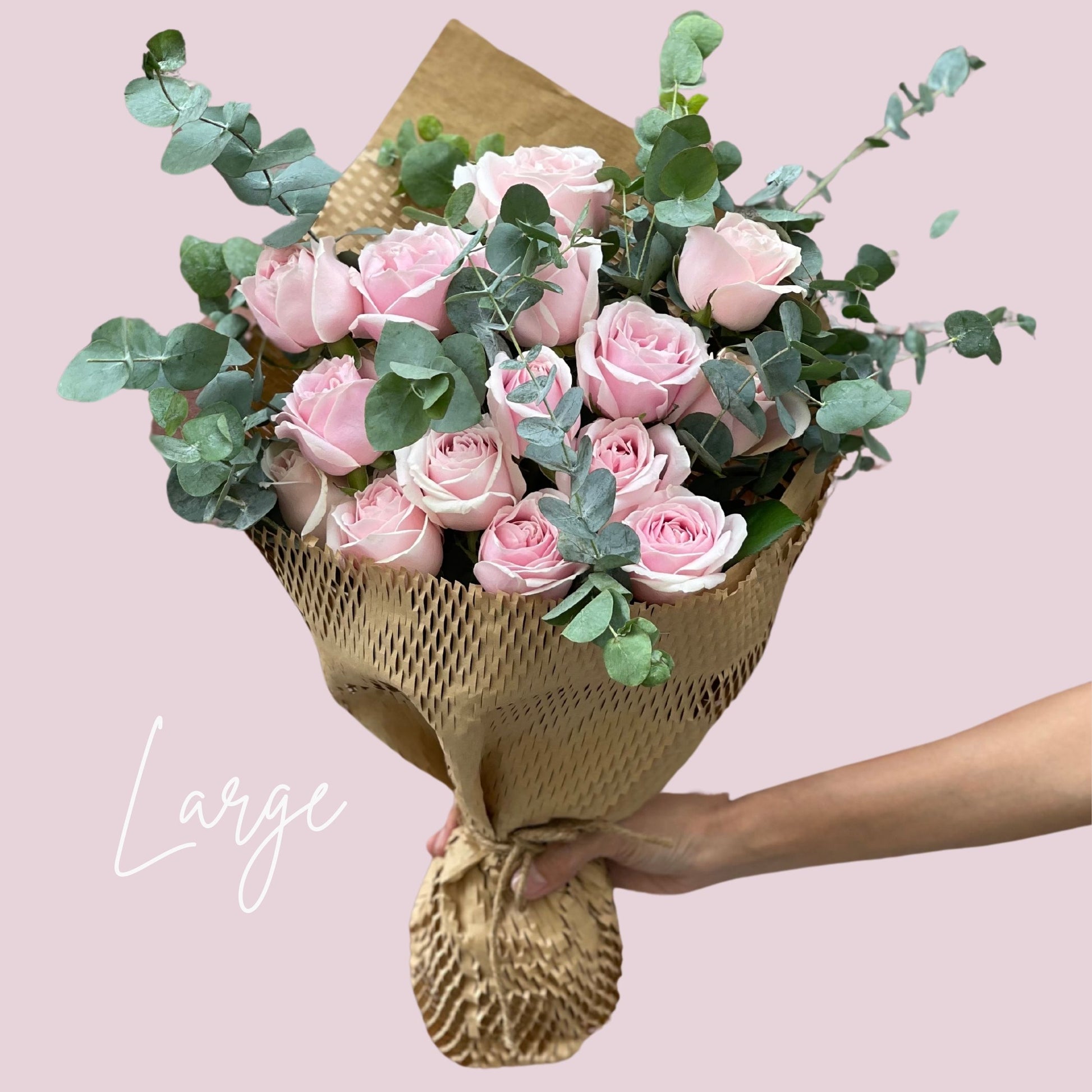 These bouquets come in small, medium, and large sizes. Medium is double the small, and large is triple. Also available as table top arrangements.